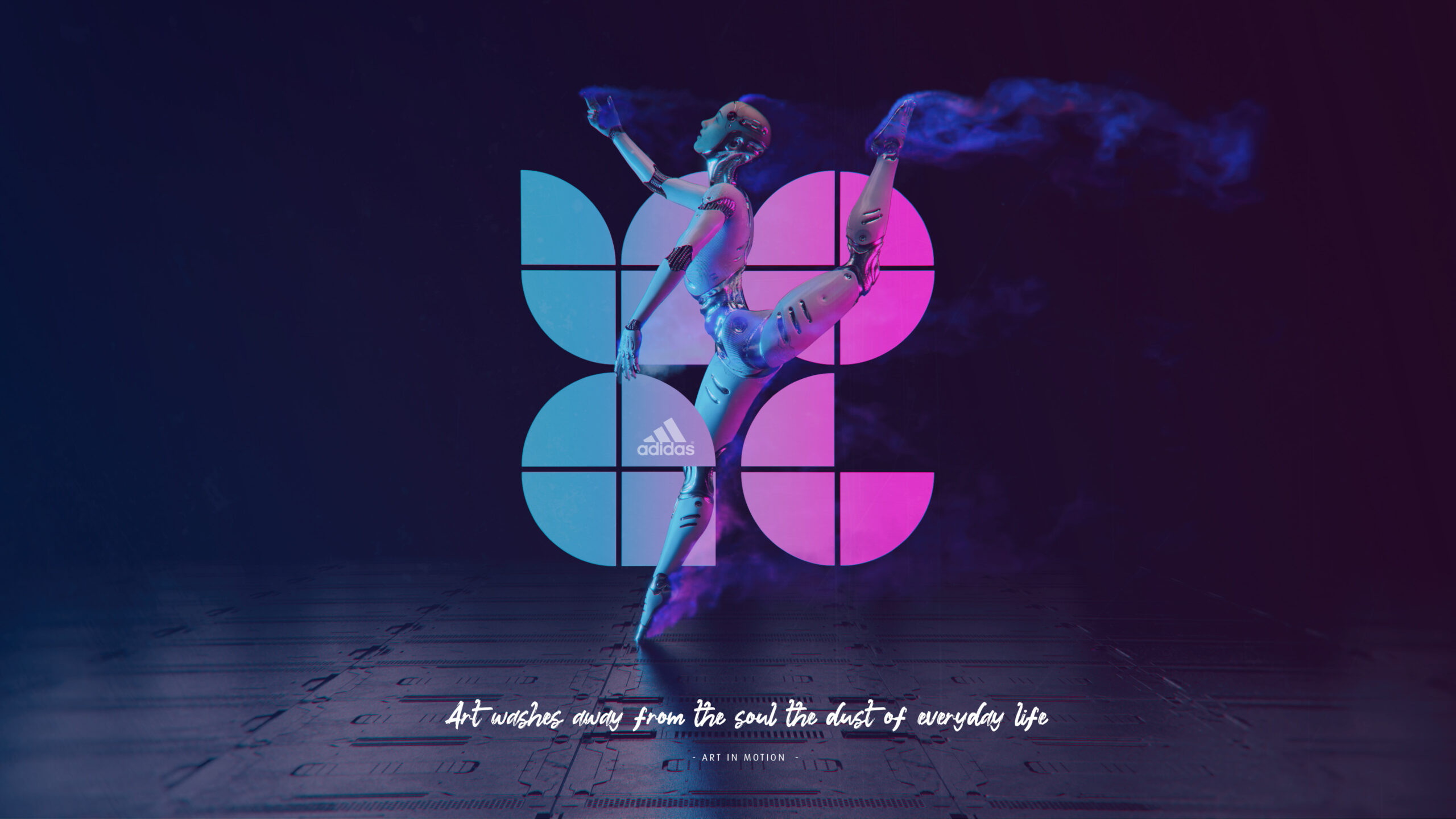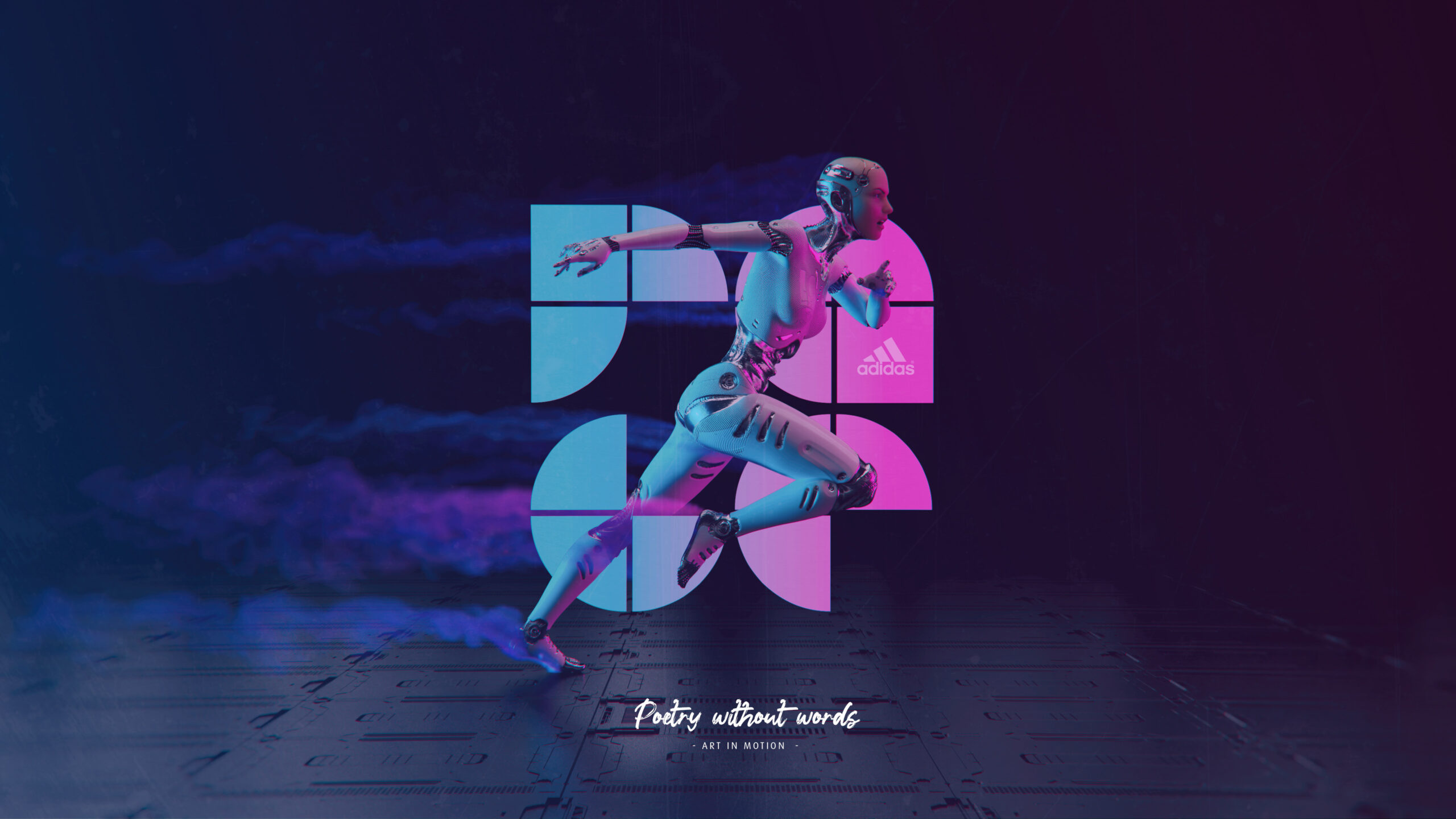 To bring the creative brief to life, I developed a series of key visuals that seamlessly blend creativity, technology, and innovation. These visuals center around a futuristic android character, symbolizing the fusion of human expression and advanced performance. The android is depicted in dynamic motion, engaging in a variety of athletic and artistic actions. Each visual is paired with a timeless quote from a renowned artist, reinforcing the theme and connecting past artistic vision with the future of sport.