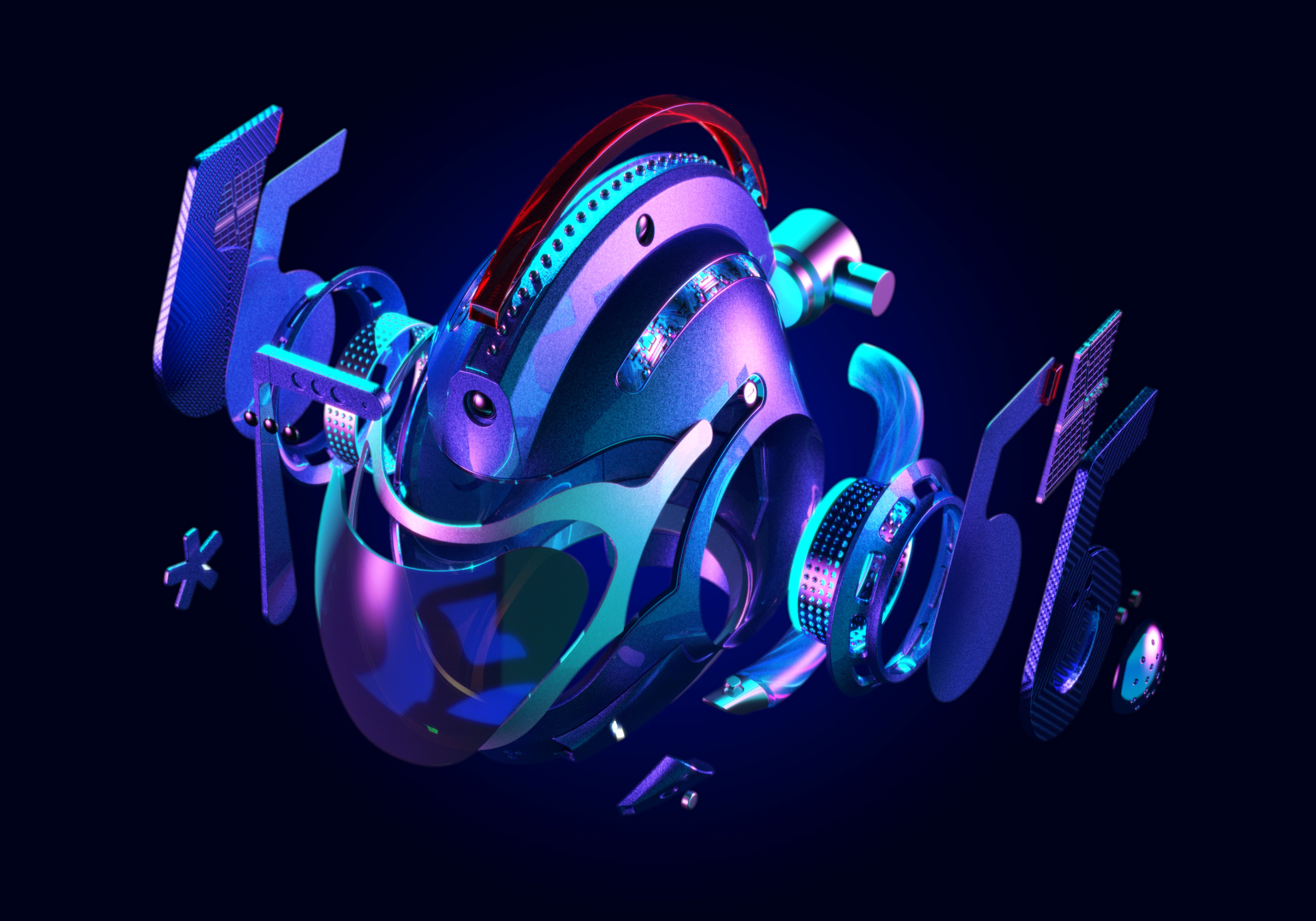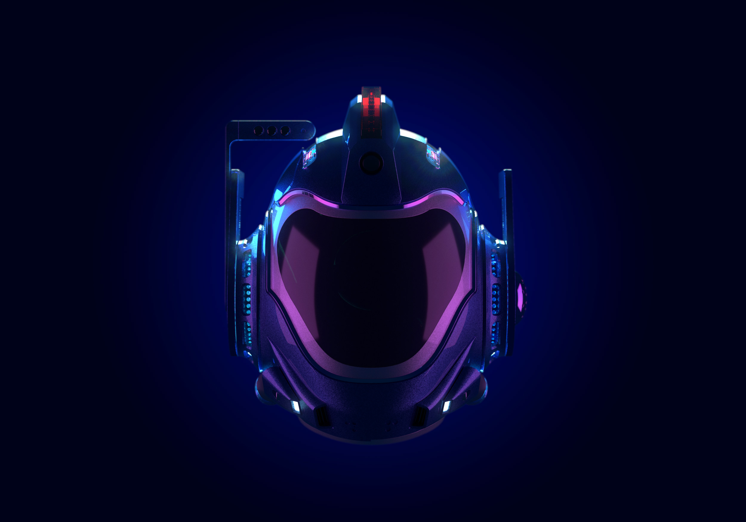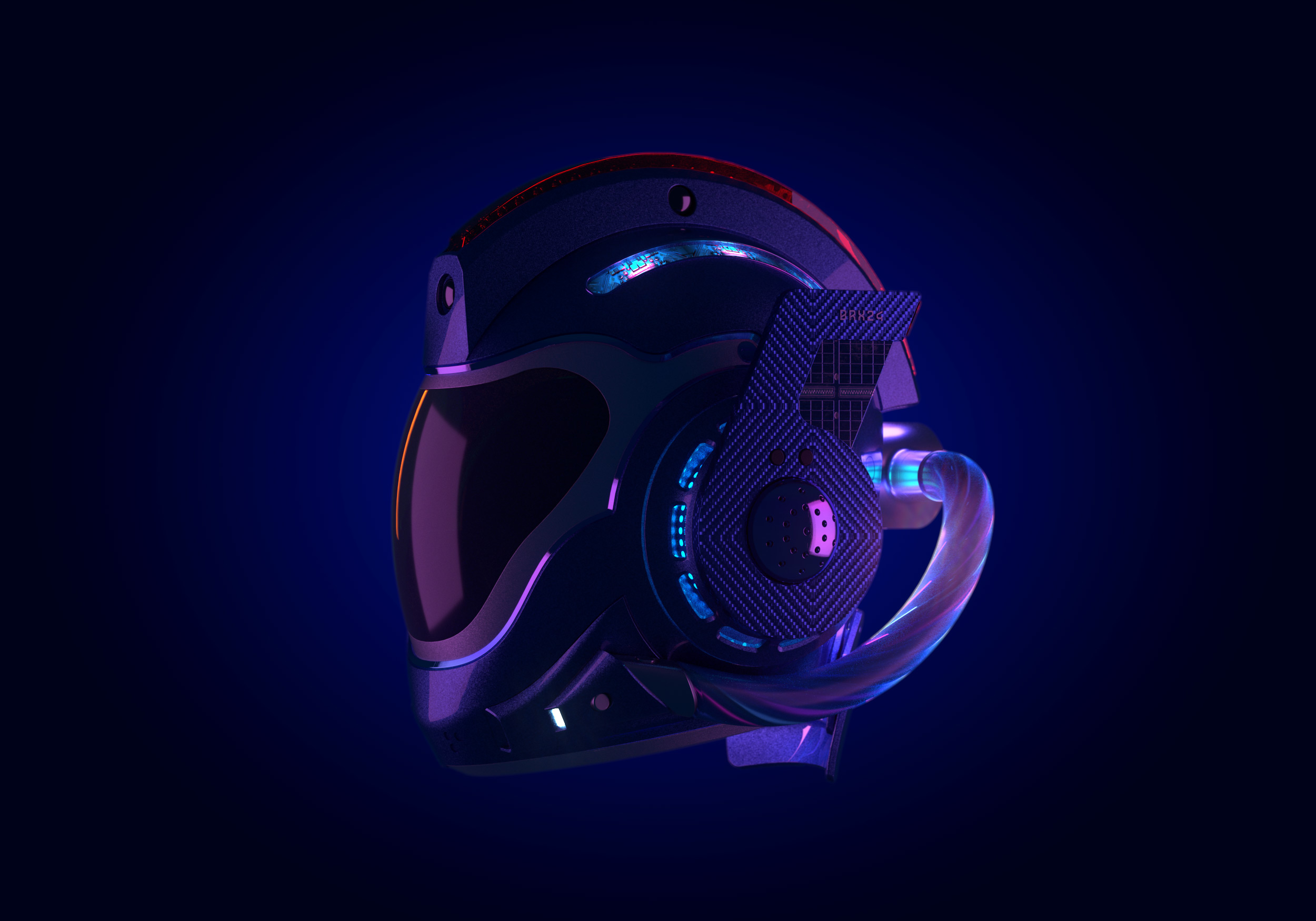 The final 3D rendered key visuals showcased the helmet’s sleek, futuristic design with dramatic precision. The HUD visor, advanced materials, and integrated technologies—such as the air cushion system and 360-degree cameras—were prominently featured, emphasizing a bold, high-tech aesthetic. Intricate details like the graphene casing and rainbow anodized steel plating added depth and realism. Plasticity models were imported into 3DS Max, where custom VRay shaders simulated complex material interactions. Final renders were meticulously composited in Photoshop, achieving a polished, cinematic look with enhanced lighting, atmosphere, and visual storytelling.