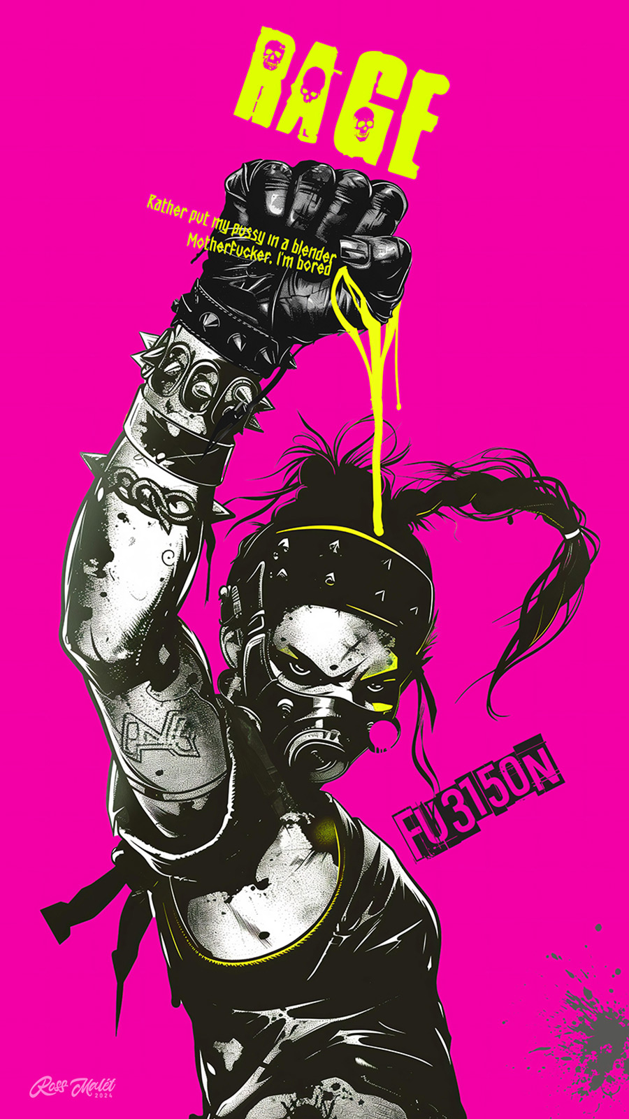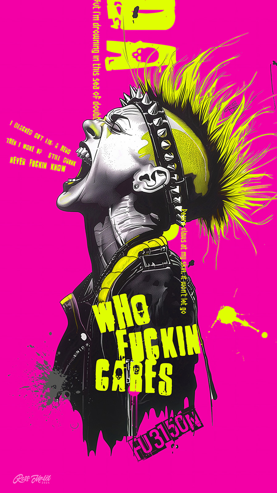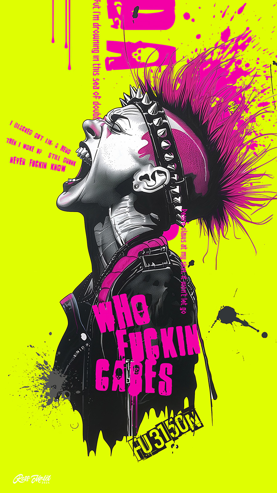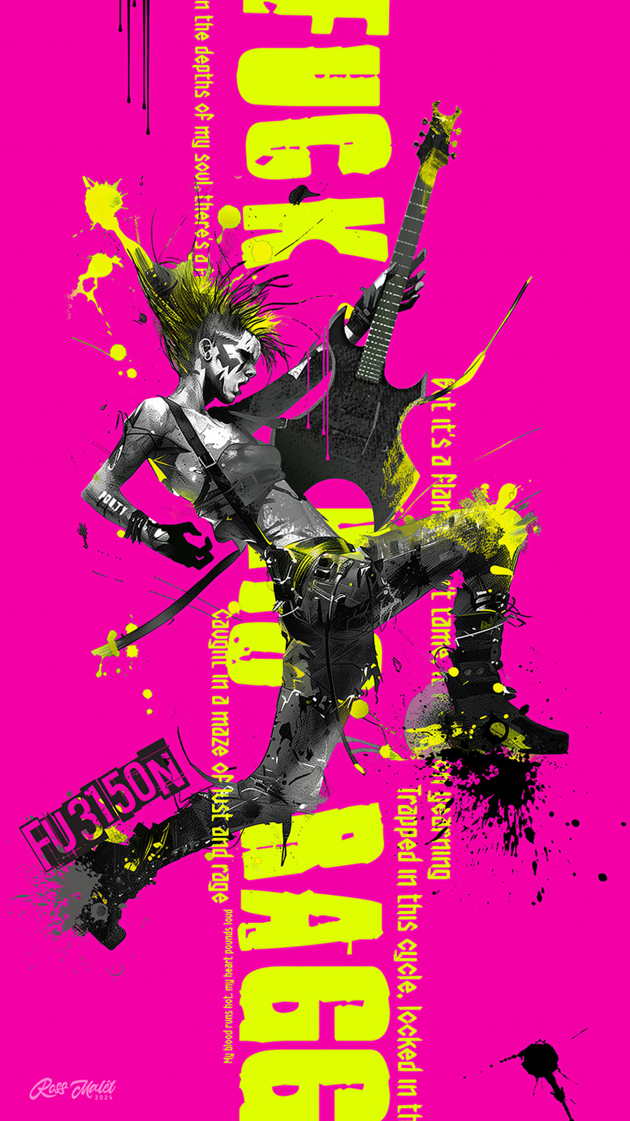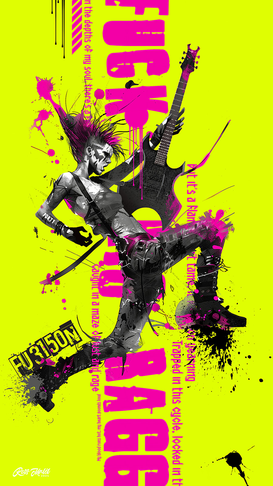 I felt inspired to create some punk-style graphics for this and created it under my own music mantle of “Fu3150n“ and accordingly wrote my own lyrics to support this collection.