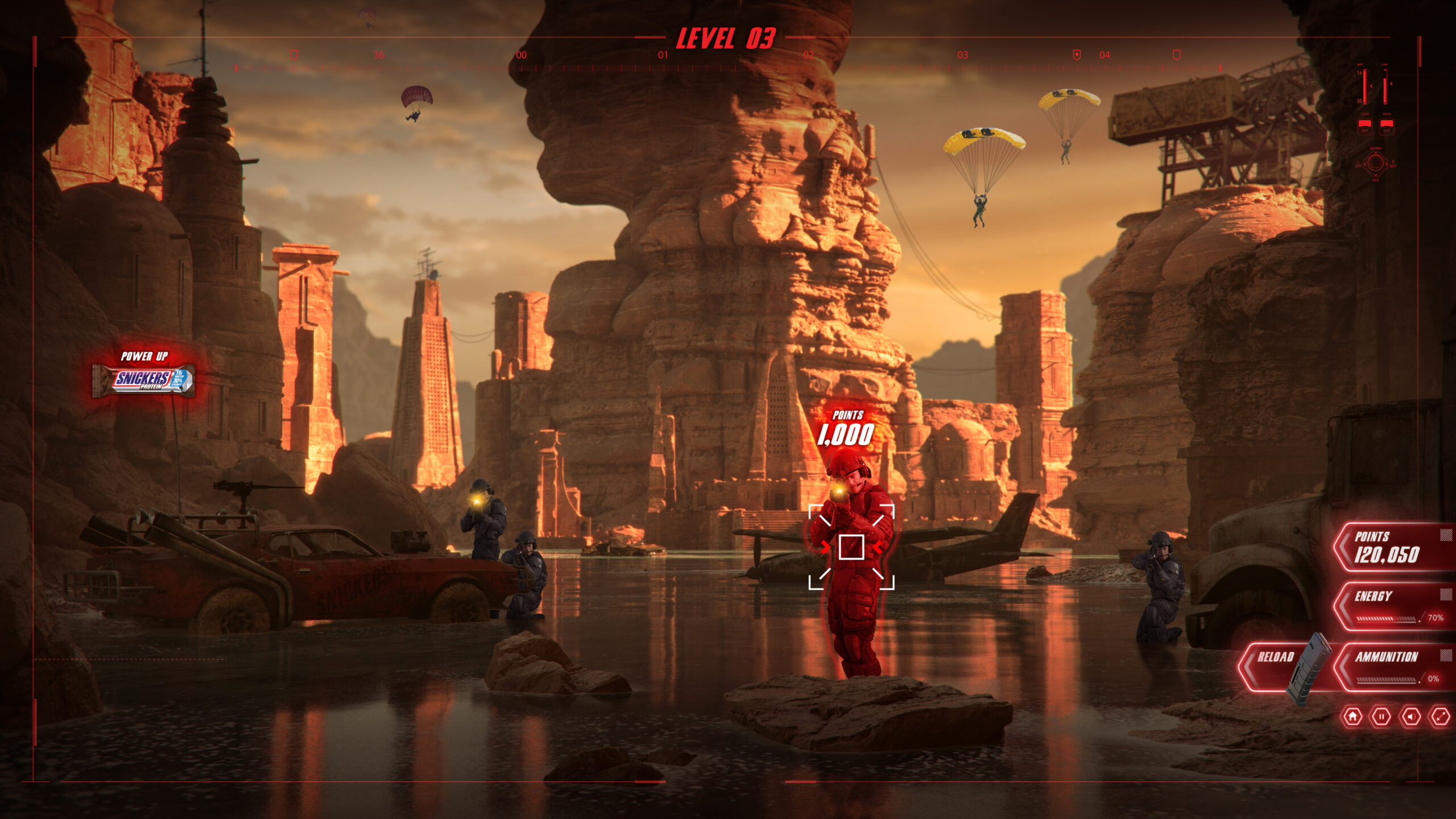 The solution was to create an online game—a simple yet addictive shoot-’em-up experience that kept users coming back. We developed a dedicated microsite that encouraged visitors to register and play, with a range of prizes used as incentive, including an all-expenses-paid, adrenaline-fuelled weekend as the grand reward. The project involved multiple elements: we designed a campaign logo, developed the game itself, created characters and environments, and crafted a custom user interface. In addition, we built the microsite to host the game and collect user data, supported by an email campaign and a suite of animated web banners to drive traffic.